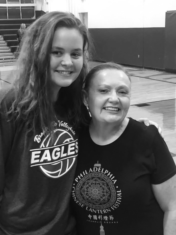 Carie Hinkle with her force-of-nature student after a volleyball game.