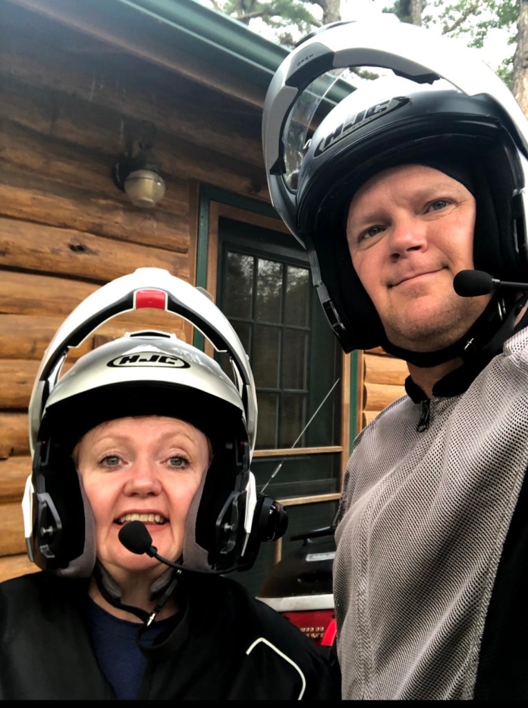 Carie Hinkle with her husband, Doug, taking unexpected journeys on their Harley.