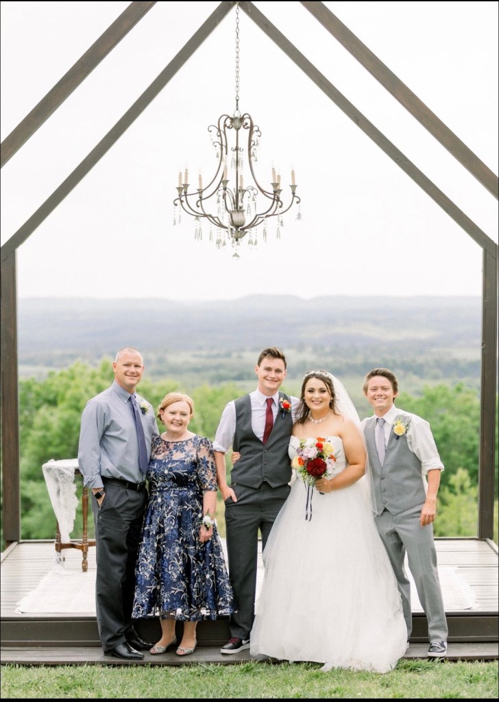Carie Hinkle, her husband, Doug, and their younger son, Bailey, celebrating the wedding of Kedron (son) and Kendra (daughter-in-love) Hinkle.