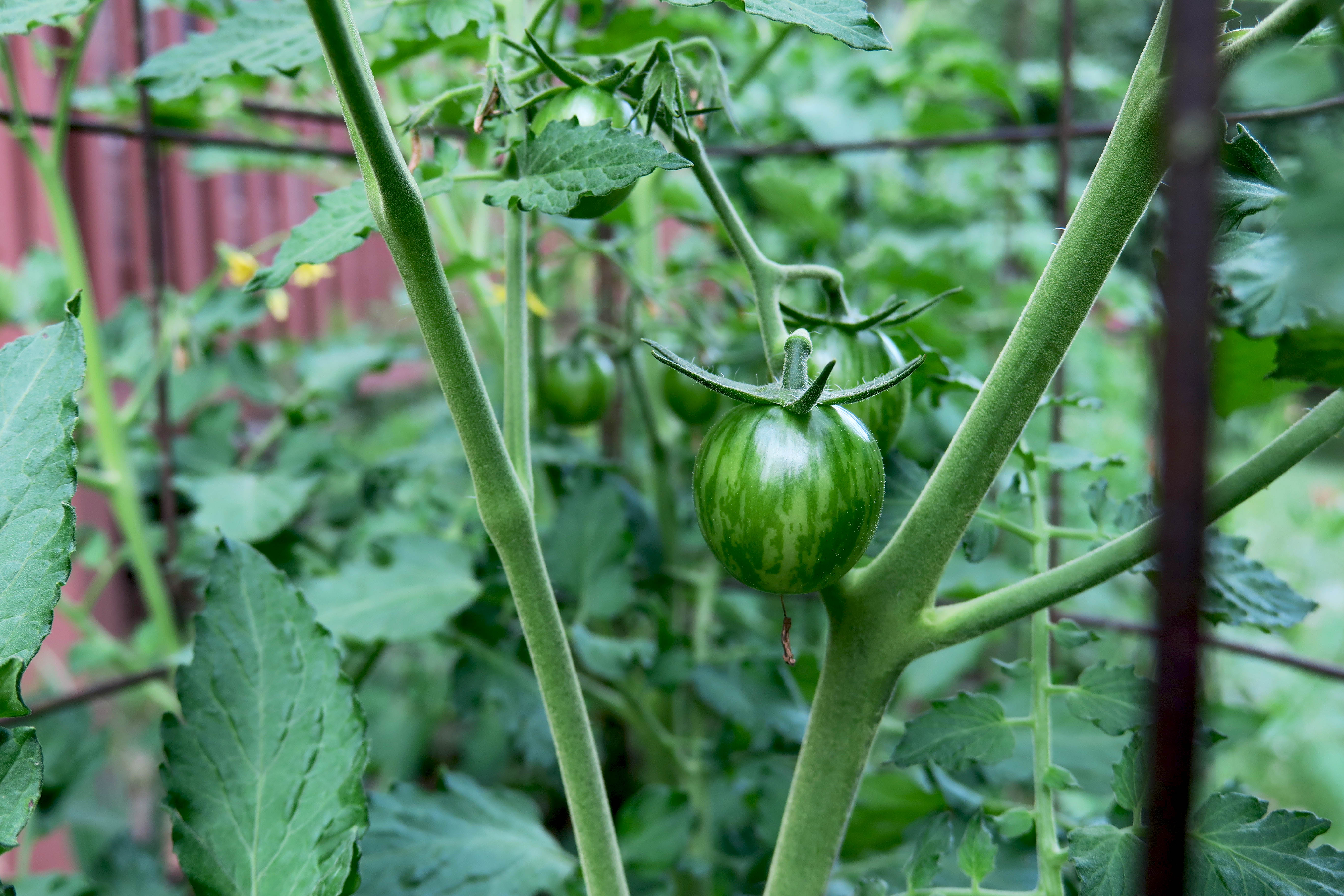 This year, one of the newcomers is the pink bumble bee tomato from Baker Creek Heirloom Seeds. My mom says the unripe cherry tomato looks like a watermelon. My mom is correct. A teeny, tiny, little, cute-as-can-be watermelon.
