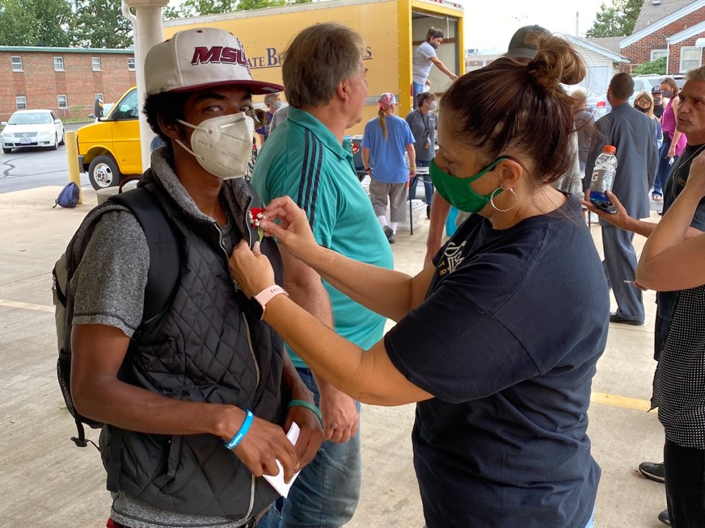 It was then my life lost all color. I only had two time periods: BRD and ARD (before Riley** died and after Riley died). I was really, really angry some days I could be so careless as to let this happen and other days because I so hated that God would let this happen to me. I quit eating and sleeping. All I could do was obsess over how can I fix it. There was surely a deal I could make to somehow get my son back. All this time, I hadn’t been to outreach or anything, and I kept hearing my unsheltered friends were asking about me. They had been told of my loss and some of them were genuinely worried. Still I stayed away. I didn’t think it would be fair to bring my sadness around anyone who didn’t have to be around it. A couple of months went by, and my younger son came home from college and said, “We are having a baby.” You know that screeching noise when you scratch a record? That’s what my brain was doing. I’m thinking, “Wait, you can’t have a baby! You don’t have a wife yet!” My beliefs and assumptions about what life’s order was must be so misconstrued. Said son would go on to tell me he was giving up his basketball scholarship, quitting college and going to the police academy. I mean, just push me off a cliff already. How could the rest of the world still be moving when I was swallowed under by quicksand?