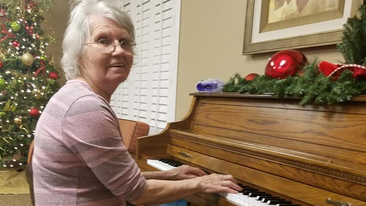 But in 2018/19 she found herself struggling with dementia. She could only speak, for the most part, in jumbled sentences, demonstrating the extent the disease had broken her brain. (This is called “aphasia” and is common with dementia). However, her happy place was still her happy place, and she would frequently sit at the piano at the nursing home with a “hymnal” and start playing. The hymnal was really in her head. What she placed on the piano was often upside down and/or may have been a cooking magazine or a pot holder.
