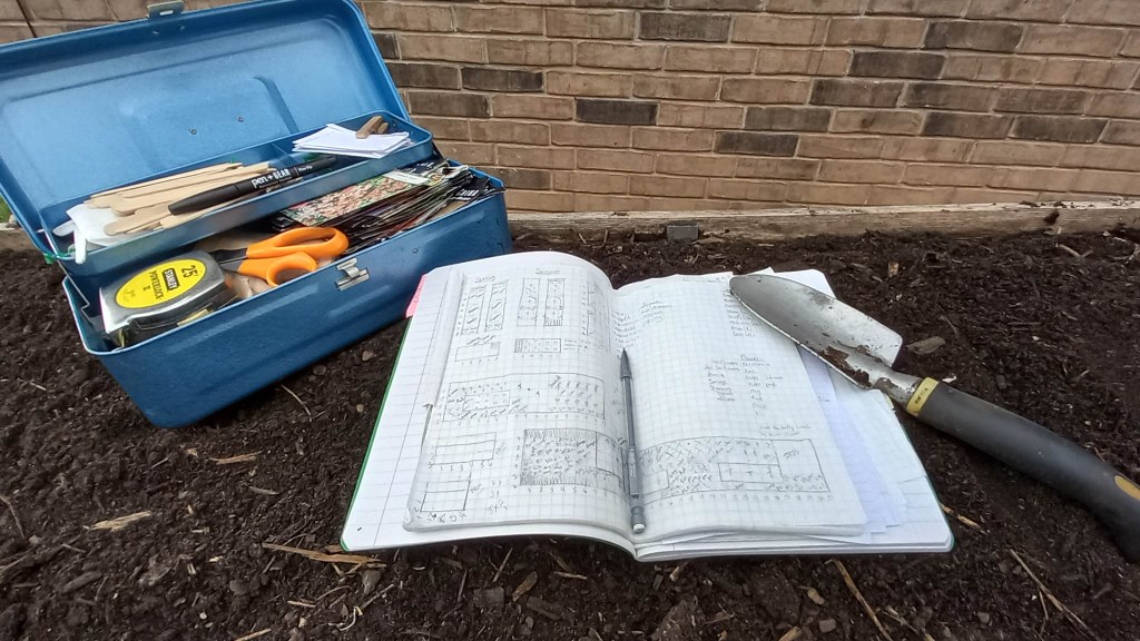 So outside I went with my tackle box filled with seed packages and my plan for planting.